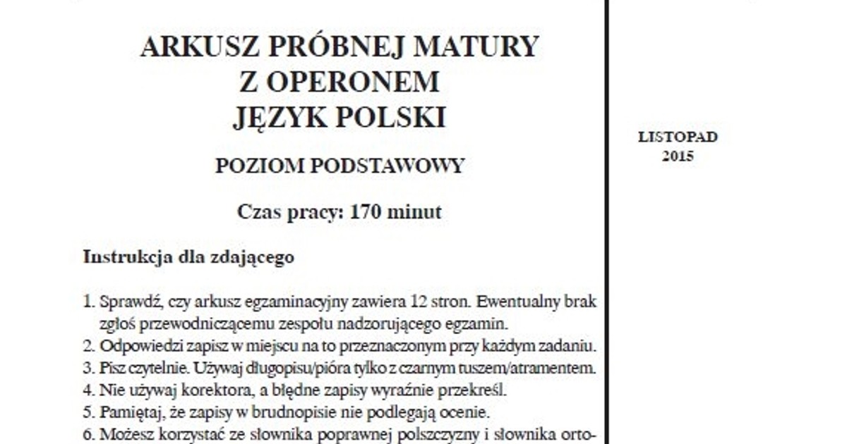 Matura Probna 2015 2016 Z Operonem 24 27 Listopada Harmonogram Arkusze Odpowiedzi Dziennik Polski